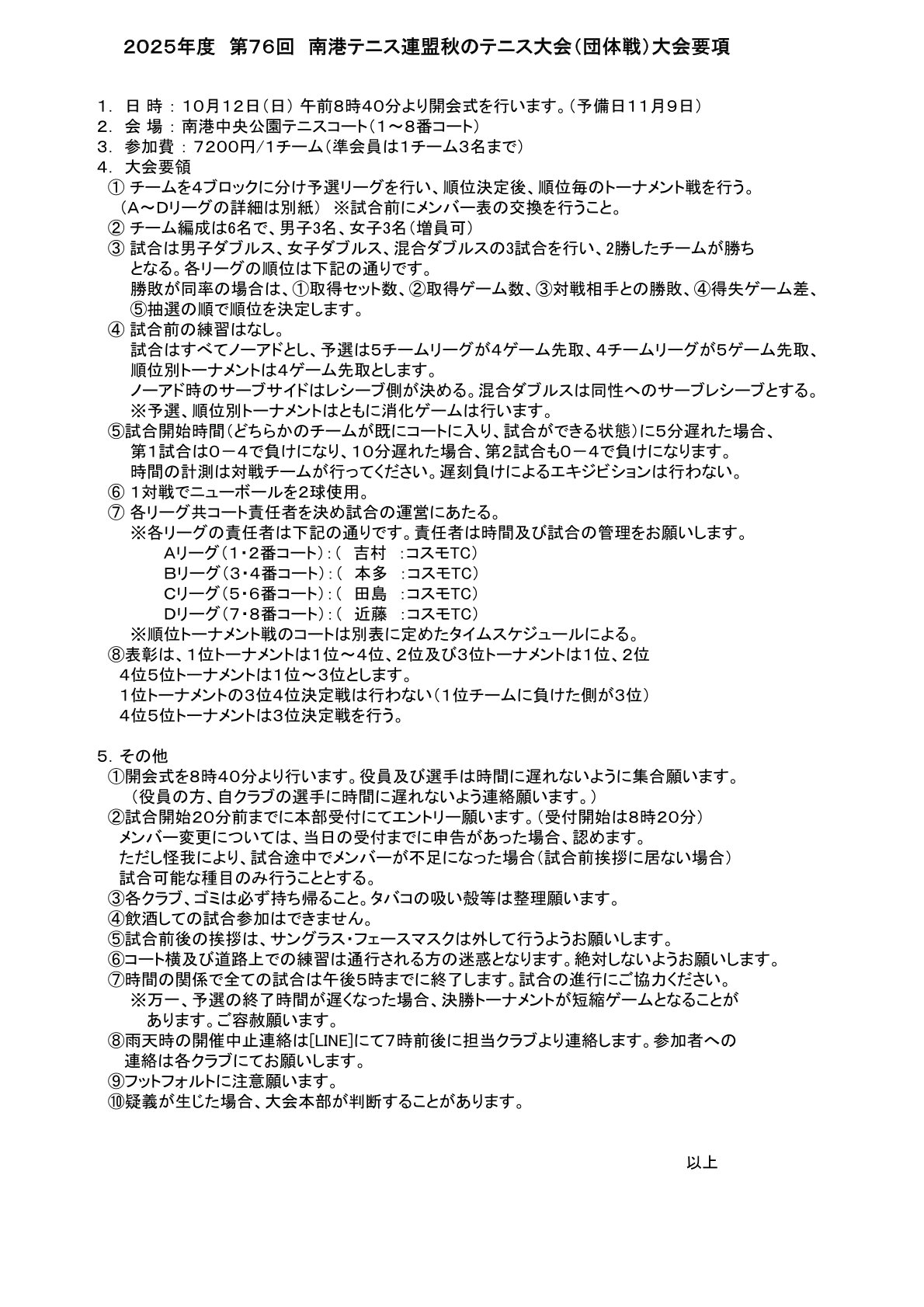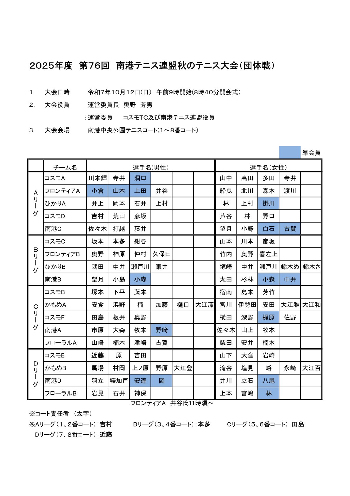 2025年10月8日 / 最終更新日時 : 2025年10月8日 nanko 試合 2025年 第76回 秋のテニス大会団体戦 コメントを残す コメントをキャンセルメールアドレスが公開されることはありません。 ※ が付いている欄は必須項目ですコメント ※ 名前 ※ メール ※ サイト 次回のコメントで使用するためブラウザーに自分の名前、メールアドレス、サイトを保存する。